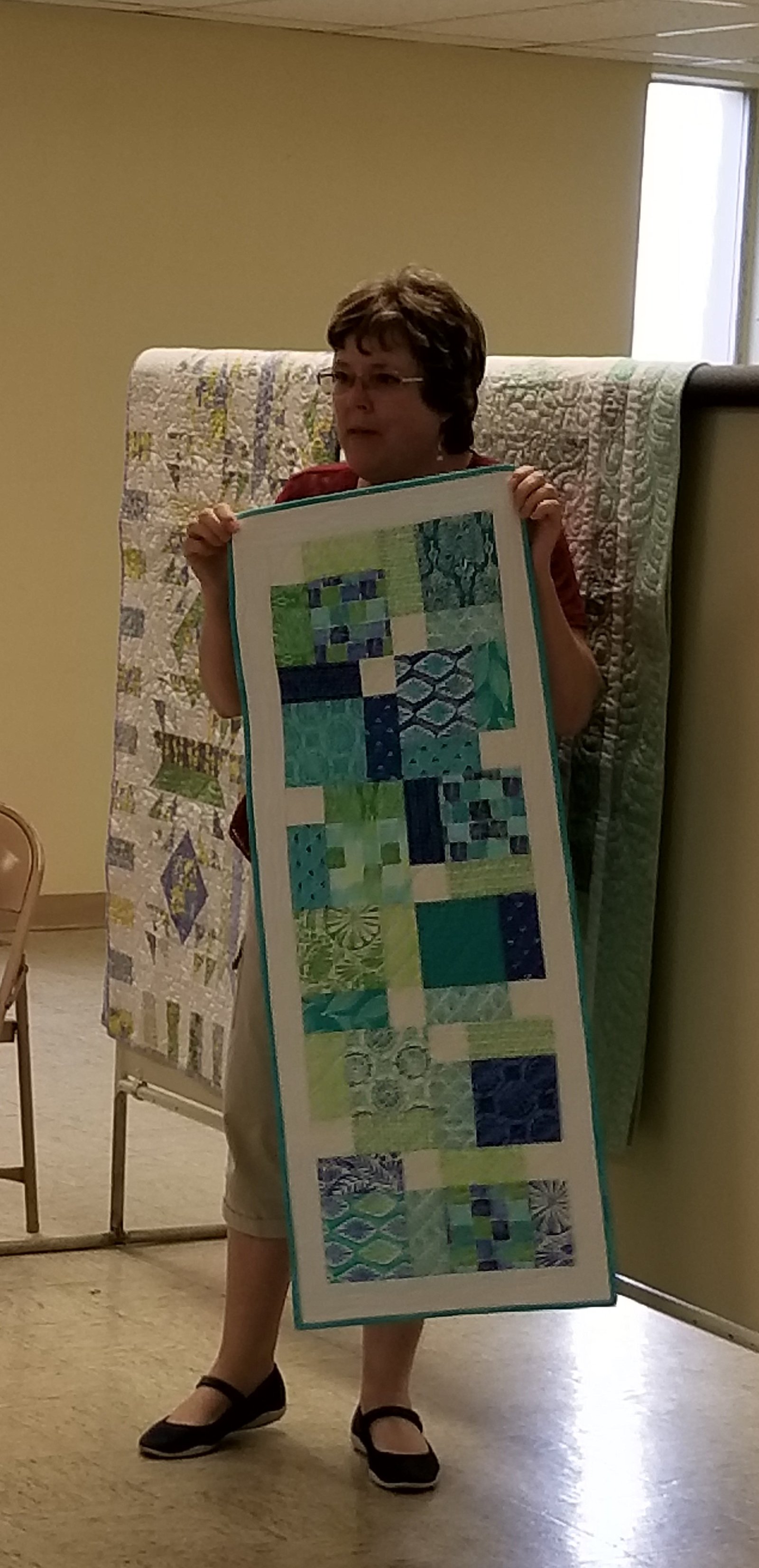 Diane Henke shows her table runner.